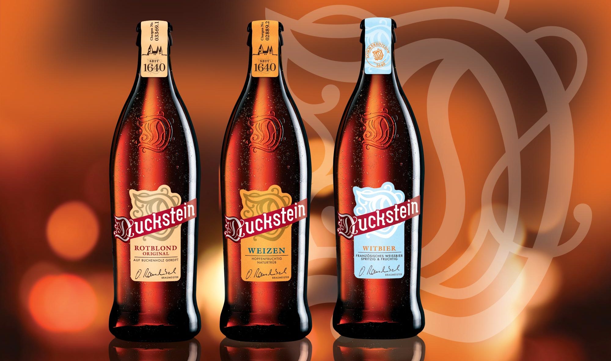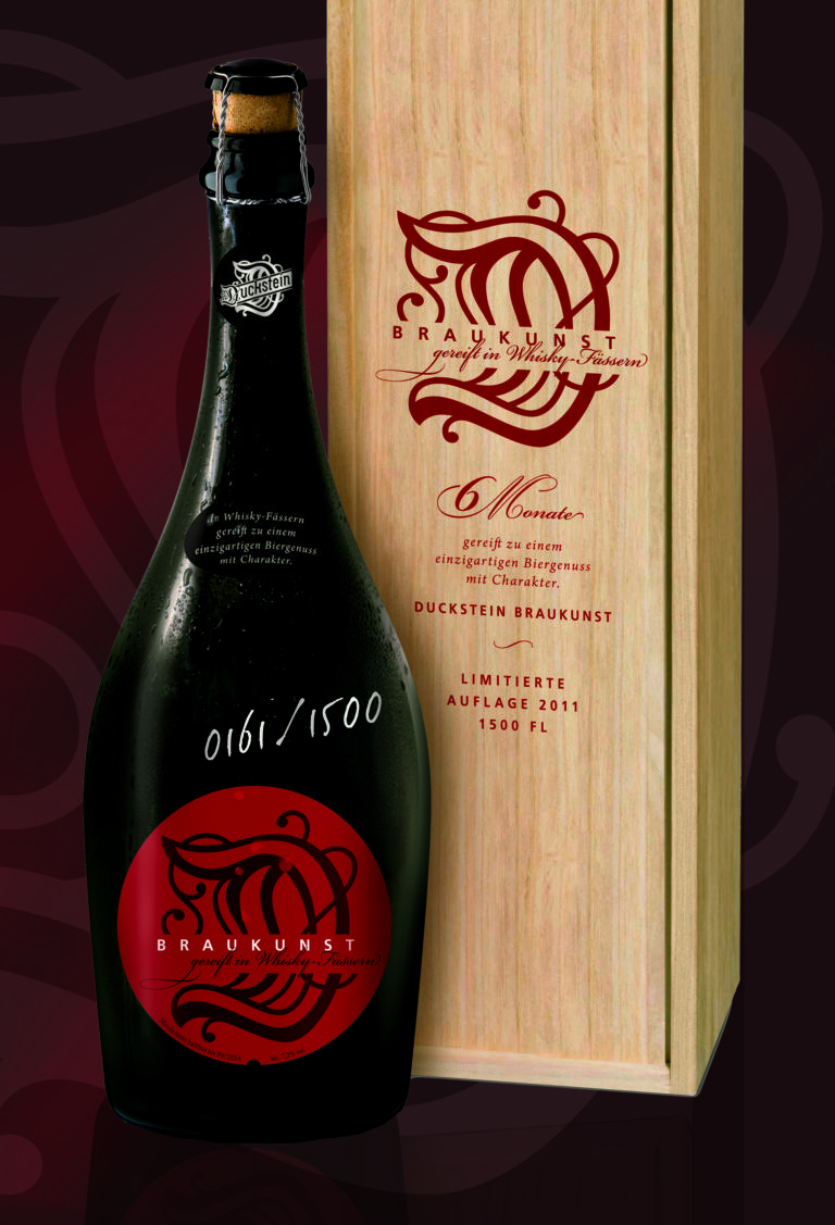 Moreover consumers were relatively proud of drinking this special beer. Therefore we decided to develop an individual bottle with an embossed Duckstein ‘D’ and a label design with a numbered sealing, a strong branding and the signature of the brewmaster to prove the quality.